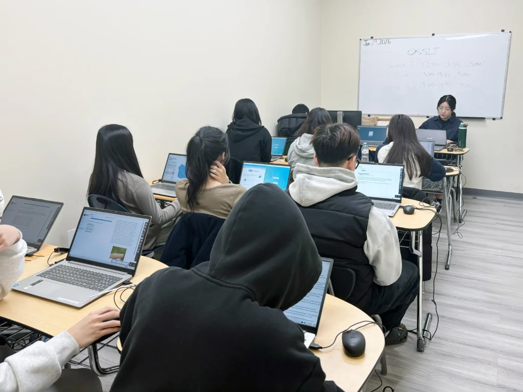 preparing for the IELTS exam participated in a comprehensive mock exam. This practice allowed students to experience test conditions,